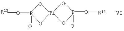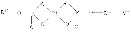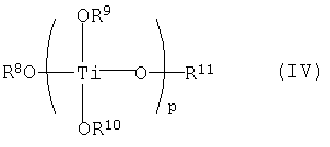 где каждый из R8, R9, R10 и R11 независимо представляет собой C1-20 алкил, p представляет собой целое число в диапазоне 1-3, и если p равен 2 либо 3, то тогда две либо три группы R9 и R10 могут быть одинаковыми либо различными, и (d) продуктов реакции между алкоксидами титана, имеющих общую формулу (IV), и ароматическими поливалентными карбоновыми кислотами, имеющими общую формулу (II), либо их ангидридами, причем молярное соотношение алкоксидов титана к ароматическим поливалентным карбоновым кислотам или их ангидридам составляет от 2:1 до 2:5, (D) компонент в виде соединения фосфора, состоящий, по меньшей мере, из одного соединения фосфора, имеющего общую формулу (V)