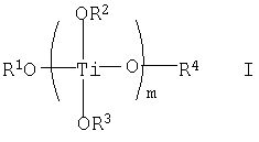 где каждый из R1, R2, R3 и R4 независимо представляет собой одно звено, выбираемое из числа C1-20, а предпочтительно C1-6, алкильных групп и фенильных групп, m представляет собой целое число в диапазоне 1-4, а предпочтительно 2-4, и если m представляет собой целое число, равное 2, 3 либо 4, то тогда две, три либо четыре группы R2 и R3 могут быть одинаковыми либо различными, и (b) продуктов реакции между алкоксидами титана, описываемыми приведенной выше общей формулой (I), и ароматическими поливалентными карбоновыми кислотами, описываемыми следующей общей формулой (II):