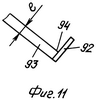 При значительных уклонах кровли (фиг.11) также выгодно использовать рулонную технологию с добавлением торцевого борта 92 необходимой высоты (оптимальной при конкретном уклоне кровли) с дозирующими отверстиями и с соответствующей высотой “е” боковых бортов 93, обеспечивающих как водонепроницаемость соединений, так и гидравлическое соединение 94 в нижней части каждой рулонной картины из непрерывного материала с соседними рулонными картинами и с водоприемными воронками наружного организованного водостока (здесь не описывается, т.к. выше имеются аналогичные описания).