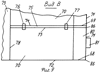 Такой желоб (фиг.8, 9) выполнен составным по длине карнизного свеса из отдельных гнутых коробов 68, 69, каждый из которых состоит из наклонного днища 70, одного нижнего торцевого борта 71 и двух боковых бортов 72, 73, 74 любой формы (например, прямоугольной или треугольной формы, которая может зависеть от уклона кровли). Боковые борта 73, 74 соседних коробов соединены между собой водонепроницаемым соединением 75 и закреплены на скате кровли, например, кляммерами 76, 77. Верхняя кромка 78 наклонного днища 70 присоединена к вышележащим элементам 79 ската кровли водонепроницаемым соединением и расположена выше верхней кромки 80 торцевого борта 71. Торцевой борт 71 выполнен жестким для удержания снеголедяной массы и для его дополнительного крепления к карнизному свесу крепежными крюками 81. Жесткость его может быть достигнута, например, профилированием 82 верхней кромки 80 и установкой внутрь этого профиля 82 прочного формоустойчивого предмета 83 в виде бруска, доски и т.д. (который может свободно лежать в профиле 82 с верхним зазором “д” непосредственно над дозирующими отверстиями 84). Дозирующие отверстия 84 выполнены по возможности в наиболее низких точках наклонного днища 70.