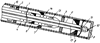 Соосность обсадной колонны 1 и соосных труб 4, 5 поддерживают с помощью опорных колец 6, 7 и 8, имеющих направляющее конусообразное отверстие, облегчающее сборку всей конструкции, и отверстия для прохода жидкостей или газов. В торце обсадной колонны 1 оставляют цементную пробку 9. Чтобы эта пробка 9 не разрушалась при нагнетании энергоносителя и во время ремонтных работ, конец трубы 5 снабжают конусообразной заглушкой 10, что облегчает также и сборку конструкции, а отверстия 11 для входа в эту трубу жидкостей или выхода их из нее располагают выше конусообразной заглушки 10. Между обсадной колонной и трубами 4 и 5 до пакеров устанавливают гидравлические якори 12 и 13, предотвращающие несанкционированное перемещение труб 4, 5 вдоль оси. Труба 4 имеет отверстия 14 для прохода жидкостей между этой трубой и трубой 5. Конусообразный патрубок конца трубы 4 также облегчает сборку конструкции из этих труб.