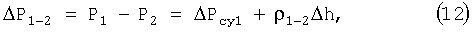 Так как гидростатическое давление в восходящей ветви газожидкостного потока направлено против потока, а в нисходящей – по потоку, то перепад давления между точками измерения будет равняться: