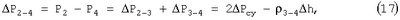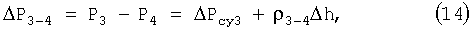 P1, P4 -давление в восходящей и нисходящей ветвях.