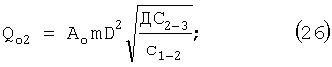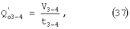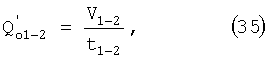 Зная расстояния между измерительными базами l1-2, l2-3, l3-4, l1-4, объемы измерительных баз V1-2, V2-3, V3-4, V1-4, можно определить скорости движения и объемные расходы Q’o «метки» на соответствующих участках измерительного устройства по одному из выражений: