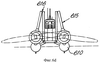 1. Плавучая электростанция для производства энергии из потоков в массе воды, содержащая несущую конструкцию (620), установленную на, по меньшей мере, одной паре плавучих элементов (610), которые выступают, по существу, сбоку за указанную несущую конструкцию, причем плавучие элементы в каждой паре расположены с противоположных сторон опорной конструкции, и множество несущих кронштейнов (615), предназначенных для установки на них генераторных блоков (750, 752) электроэнергии, проходящих в поперечном направлении с каждой стороны несущей конструкции и, по существу, перпендикулярно продольному направлению несущей конструкции, отличающаяся тем, что каждый из указанных несущих кронштейнов (615) одним концом установлен с возможностью вращения на несущей конструкции, а на втором его конце установлен генератор электроэнергии.