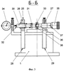 Кроме того, в установку дополнительно введено регулирующее устройство, выполненное в виде механизма бесступенчатой коррекции и визуального контроля 25 (см. фиг.1), кинематически связанного с входным управляющим валом 19 гидрораспределителя 18. Регулирующий механизм бесступенчатой коррекции и визуального контроля 25 (см. фиг.3) содержит две параллельно расположенные на некотором расстоянии друг от друга стойки 26 и 27, неподвижно закрепленные своими основаниями 28 и 29 к корпусу 1. В стойки 26 и 27 соосно с оппозитным расположением и с возможностью осевых перемещений встроены: с одной стороны подпружиненный относительно стойки 26 цилиндрический стержень 30 с двухсторонним уступом 31 и плоскими опорными торцами 32 и 33 и индикаторные часы 34, а с другой стороны – микрометрическая резьбовая головка 35 с подвижным шпинделем 36 и отсчетным устройством 37.