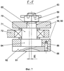 Средняя цилиндрическая ступень 70 стержня 61 выполнена с эксцентриситетом «Е» относительно оси вращения стержня 61 в соосных расточках 66 и 67 рычага 59 или 60 и с возможностью взаимодействия с поверхностью внутреннего диаметра подшипника 71, запрессованного по наружному диаметру в отверстие тяги 72 механизма 55 (см. фиг.6) передачи управляющего сигнала.