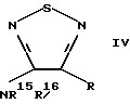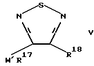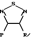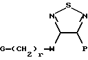 19. Соединение формулы V![]() в которой W’ выбран из группы, состоящей из О, S и SO2; R17 представляет C1-C6-алкил; R18 представляет хлор или бром. 20. Соединение по п.19, в котором W’ представляет S или SO2. 21. Соединение по п.19, которое выбрано из группы, состоящей из следующих соединений: 3-хлор-4-бутилтио-1,2,5-тиадиазол, 3-хлор-4-этилтио-1,2,5-тиадиазол, 3-хлор-4-(1-пропилтио)-1,2,5-тиадиазол, 3-бром-4-бутилтио-1,2,5-тиадиазол, 3-хлор-4-этилсульфонил-1,2,5-тиадиазол, 3-хлор-4-бутилсульфонил-1,2,5-тиадиазол, 3-хлор-4-пропилсульфонил-1,2,5-тиадиазол, 3-хлор-4-метилсульфонил-1,2,5-тиадиазол, 3-хлор-4-пентилсульфонил-1,2,5-тиадиазол и 3-хлор-4-(4-метилпентилсульфонил)-1,2,5-тиадиазол. 22. Соединение по п.21, которое выбрано из группы, состоящей из следующих соединений: 3-хлор-4-бутилтио-1,2,5-тиадиазол, 3-хлор-4-этилтио-1,2,5-тиадиазол, 3-хлор-4-(1-пропилтио)-1,2,5-тиадиазол, 3-бром-4-бутилтио-1,2,5-тиадиазол, 3-хлор-4-этилсульфонил-1,2,5-тиадиазол, 3-хлор-4-бутилсульфонил-1,2,5-тиадиазол. 23. Способ получения соединений формул II или III ![]() ![]() в которых P представляет галоген; W представляет кислород или серу; R представляет OR4 или SR4; G выбран из одной из следующих азациклических или азабициклических кольцевых систем: ![]() ![]() ![]() ![]() ![]() ![]() ![]() или G может быть необязательно замещенным C3-C8-циклоалкилом или необязательно замещенным C1-6-алкилом, в которых заместителем является -NR6R7; R6 и R7 оба представляют водород или C1-6-алкил; один из R1 и R2 представляет водород, а другой представляет водород или C1-6-алкил; R3 представляет водород или C1-5-алкил; n представляет 0, 1 или 2; m представляет 0, 1 или 2; p представляет 0, 1 или 2; q представляет 1 или 2; r представляет 0, 1 или 2; включающий a) реакцию (CN)2 с соединением, выбранным из группы, состоящей из R4-V-H, в котором V представляет О или S, и G(CH2)r-W-H, и b) взаимодействие с S2Cl2. 24. Фармацевтическая композиция, обладающая способностью взаимодействовать с мускариновыми холинергическими рецепторами, включающая в качестве активного ингредиента соединение по любому из пп.1 – 18, в сочетании с одним или более фармацевтически приемлемыми носителями или разбавителями для него. Приоритет по пунктам: 24.10.1994 по пп.1 – 7, 9 – 11, 13 – 15, 17 – 24; 01.06.1995 по пп.8, 12, 16. РИСУНКИ