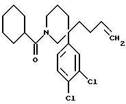 ПОЛУЧЕНИЕ 53-(Бут-1-ен-4-ил)-1-циклогексаноил-3-(3,4-дихлорфенил)пиперидин ![]() Это соединение получали таким же способом, как описан в ПОЛУЧЕНИИ 4, с использованием циклогексаноилхлорида вместо бензоилхлорида. 1H-NMR (CDCl3): 1.1-1.9 (m, 19H), 2.05-2.15 (m, 1H), 2.35-2.5 (m, 1H), 3.1-3.3 (m, 2H), 3.5-3.65 (m, 1H), 4.45-4.5 (m, 1H), 4.8-4.9 (m, 2H), 5.55-5.7 (m, 1H), 7.1-7.15 (m, 1H), 7.3-7.4 (m, 2H).