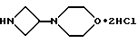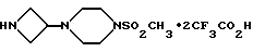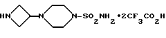 ПОЛУЧЕНИЕ 16Бистрифторацетат 3-(4-аминосульфонилпиперазин-1-ил)азетидина ![]() К раствору соединения ПОЛУЧЕНИЯ 15 (364 мг, 1,14 ммоль) в дихлорметане (6 мл) в атмосфере азота при 0oC медленно добавляли трифторуксусную кислоту (3 мл, 35 мол. экв. ) и реакционной смеси давали нагреться до комнатной температуры в течение двух часов. Растворитель затем удаляли при пониженном давлении и остаток подвергали азеотропной перегонке с дихлорметаном (3х10 мл). Получаемое масло растирали с диэтиловым эфиром, получая указанное в заголовке соединение (379 мг), которое использовали без дальнейшей очистки. 1H-NMR (CDCl3): = 2.4-2.6 (m, 4H), 2.95-3.15 (m, 4H), 3.35-3.5 (m, 1H), 3.8-4.1 (m, 4H), 6.6-6.8 (m, 2H), 8.6-8.85 (m, 3H).