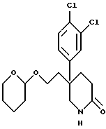 ПОЛУЧЕНИЕ 195-(3,4-Дихлорфенил)-5-(2-[тетрагидрофуран-2-илoкcи]-2(1H)- пиперидон ![]() Соединение ПОЛУЧЕНИЯ 18 (18,7 г, 45,2 ммоль) растворяли в насыщенном аммиачном растворе этанола (500 мл), который содержал никель Ренея (3,5 г). Смесь перемешивали в атмосфере водорода при атмосферном давлении в течение семи часов. Катализатор затем удаляли фильтрованием, этанол удаляли при пониженном давлении и остаток хроматографировали с использованием силикагеля и элюирования сначала диэтиловым эфиром и затем смесью метанол:дихлорметан (1: 9 по объему), получая указанное в заголовке соединение (10,4 г). Rf ТСХ (диоксид кремния, метанол: дихлорметан, 1:9 по объему). LRMS m/z = 372 (m+1)+. 1H-NMR (CDCl3): = 1.4-1.8 (m, 6H), 1.9-2.1 (m, 5H), 2.3-2.45 (m, 1H), 3.0-3.2 (m, 1H), 3.35-3.85 (m, 4H), 4.35-4.4 (m, 1H), 6.05 (s,br.,1H), 7.15-7.45 (m, 3H).