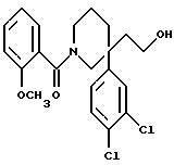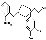 ПОЛУЧЕНИЕ 231-(2-Метоксибензоил)-3-(3,4-дихлорфенил)-3-(2-гидроксиэтил) пиперидин, ![]() Это соединение получали способом, подобным способу, который использовали в ПОЛУЧЕНИИ 22, применяя соединение, полученное в Получении 20, и 2-метоксибензоилхлорид вместо бензоилхлорида. Соединение очищали колоночной хроматографией (диоксид кремния, градиентное элюирование смесью дихлорметан: метанол с градиентом от 49:1 до 24:1 по объему). LRMS 410 m/z(m+1)+. 1H-NMR(CDCl3): = 1.35-2.2 (m, 8H), 3.1-4.5 (m, 8H), 6.8-7.1 (m, 2H), 7.2-7.55 (m, 5H).