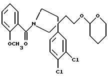 ПОЛУЧЕНИЕ 331-(2-Метоксибензоил)-3-(3,4-дихлорфенил)-3-(2-[тетрагидропиран- 2-илокси]этил)пирролидин ![]() Это соединение получали способом, подобным способу, использованному в ПОЛУЧЕНИИ 32, с применением соединения, полученного в ПОЛУЧЕНИИ 31, и 2-метоксибензоилхлорида вместо бензоилхлорида. 1H-NMR (CDCl3): = 1.2-2.25 (m, 10H), 3.05-4.45 (m, 11H), 6.9-7.45 (m, 7H).