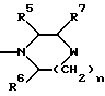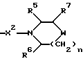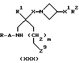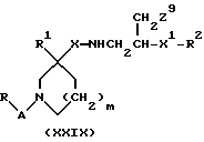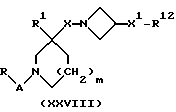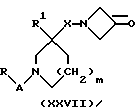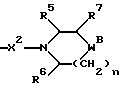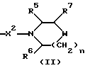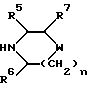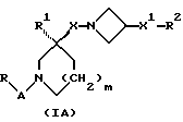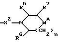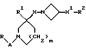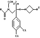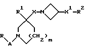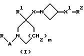 (57) Реферат: Описываются новые 3-азетидинилалкилпиперидины или пирролидины формулы I или их фармацевтически приемлемые соли, где R представляет С3-С7 циклоалкил, С1-C6 алкил, замещенный С3-С7 циклоалкилом, или фенил, возможно замещенный OR5, где R5 представляет С1-C4 алкил; А представляет СО или SO2; R1 представляет фенил, замещенный двумя галоидными заместителями; R2 представляет группу формулы II, где R5, R6, R7 представляет Н; Х2 представляет простую связь; W представляет О, NSO2NR5R6 NS02 (С1-С4)алкил; n равно 1; X1 представляет простую связь; Х представляет С1-С4 алкилен; m равно 0 или 1. Новые соединения являются антагонистами тахикининов. Описываются также способы их получения, промежуточные соединения, фармацевтическая композиция на их основе и способ лечения. 6 с. и 9 з.п.ф-лы, 3 табл. ![]()
