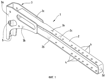 Кронштейн 3 имеет в перегородке 3а набор 5 отверстий, который является ответным к другому, выполненному в предусмотренном месте крепления, например, в продольной балке рамы шасси, набору отверстий.