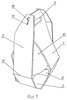 Место и направление выполнения прорезей 11 заготовки 2 должно обеспечивать удобство их соединения с фиксирующими выступами 10 заготовки 1 при сборке тары.
