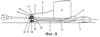 На фиг.1-3 предназначенная для использования в транспортном средстве-амфибии трансмиссия обозначена как единое целое позицией 20 и включает в себя узел продольной трансмиссии, содержащий двигатель 8 и редуктор или коробку 9 передач, обеспечивающую переключение скоростей, ориентированные вдоль продольной оси А транспортного средства. Распределительный конец 10 двигателя смещен к задней части транспортного средства, а выход из коробки передач обращен к передней части транспортного средства.