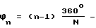 n – кумулятивная фаза на n-ном гидрофоне базы относительно фазы на первом гидрофоне, относительно которого отсчитываются углы