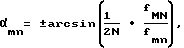 arcsin 1/2N, ширина каждого лепестка на уровне 0,7 от максимального определения выражением 2
