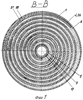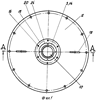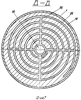 На фиг.7 – сечение Д-Д на фиг.2, горизонтальное сечение радиально ориентированных каналов и узкой части ступенчатой канавки в виде спирали эвольвента круга для отвода воды по кратчайшему пути в выпускное отверстие.