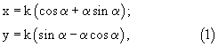 где x и y – координаты точки спирали в системе декартовых координат ОХУ;