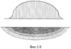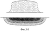 Применяемый многолучевой лазер обеспечивает более равномерное, по сравнению с однолучевым, распределение интенсивности излучения и, соответственно, более равномерное тепловое воздействие на упрочняемую зону. Однако в связи с тем, что в этом лазере трубки излучателя скомпонованы по граням концентричных шестигранников (Фиг.2,а), при перемещении луча по упрочняемой поверхности получается существенная разница суммарной мощности, получаемой отдельными участками (точками) дорожки облучения (воздействия) от центра к краям, и разница в продолжительности воздействия излучения на отдельные точки, причем эта разница в получаемой мощности и продолжительности воздействия при перемещении в разных направлениях различна. Это приводит к неравномерности теплового воздействия на упрочняемый материал и, соответственно, к неравномерности структуры, твердости и глубины упрочненной зоны по сечению дорожки от центра к краям дорожки (Фиг.2,б), причем степень этой неравномерности различна при движении луча в разных направлениях. При упрочнении кромок, например, форм для литья стеклотары, режущих кромок вырубных штампов, ножей гильотинных и т.д. для достаточного тепловвода в край кромки и обеспечения необходимой глубины упрочнения необходимо пятно излучения располагать относительно кромки так, чтобы вдоль края кромки проходила часть пятна с достаточной мощностью, т.е. ближе к центру пятна с большим смещением границы пятна излучения относительно кромки (Фиг.2,в). Это приводит к непродуктивной потере большой доли мощности лазерного излучения, проходящего за пределами кромки, и к неоправданному уменьшению ширины дорожки упрочнения.