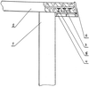 На чертеже представлена схема ремонта карнизной плиты по предлагаемому способу со следующими обозначениями: 1 – стена здания, 2 – карнизная плита, 3 – арматура, 4 – нижний щит опалубки с ребрами жесткости 5, 6 – фасадный (дополнительный) щит опалубки.