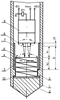 При принудительном спуске приборов в скважину головка 2 встречает препятствие на своем пути и отклоняет пружину 3, которая вместе с зеркалом 6 перемещается в сторону излучателя-приемника 8. Между отражающим зеркалом 6 и излучателем 8 изменяется расстояние S. Зная скорость распространения акустической волны V из формулы можно определить время прохождения акустической волны, которая фиксируется принимающей плоскостью и передается на преобразователь 9. При этом из данной формулы определяем S=V× t, где V – постоянная величина, тогда при расчете усилия пружины на сжатие в 1000 кг мы определяем S как предельное значение отклонения пружины, при этом t станет сигналом для датчика 8 на замыкание контакта реле P1.