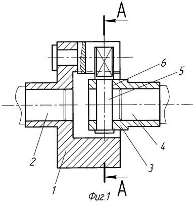 В полумуфте 1 выполнены цилиндрическая расточка 8, ось которой параллельна оси вала 2, с образованием двух диаметрально противоположных окон из нее, причем окно 9 обращено к оси вала 2. В указанную расточку вставлен цилиндрический палец 7, выполненный с возможностью вращения относительно оси расточки 8. С торца пальца 7, обращенного к полумуфте 3, выполнен сквозной радиальный паз 11.