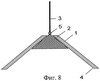 Чувствительный элемент на фиг.4 состоит из телескопического стакана, который имеет секции цилиндрической формы 1, 6, 7 и секцию 2 в форме цилиндра. Секции 1, 6, 7 имеют отверстие для троса 3, который соединен с секцией 2. Высоты секций увеличиваются к периферии. Нижний торец 4 периферийной секции 1 выполнен заостренным. Трос 3 закрепляется в центре верхнего торца секции 2 с помощью ушка 5.