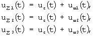 Так как сигнал в трех каналах приема одинаков, а шумы и помехи в каналах независимы, то в каждом канале будут присутствовать колебания вида: