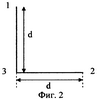 Структурная схема устройства, реализующего предлагаемый фазовый способ пеленгации, представлена на фиг.1. Взаимное расположение приемных антенн показано на фиг.2. Устройство содержит три канала приема, каждый из которых состоит из последовательно включенных: приемной антенны 1 (2, 3), приемника 4 (5, 6). К выходу приемника 4(5) последовательно подключены n-отводная линия задержки 7.i (8.i), перемножитель 9.i (10.i), второй вход которого соединен с выходом приемника 6, фильтр 11.i (12.i) нижних частот, пороговый блок 13.i (14.i), блоки 15.i (16.i) регистрации (i=1, 2,…,n).
