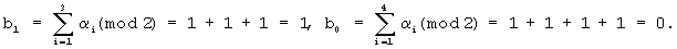 Предлагаемое изобретение относится к способам выполнения вычислительных операций в кодах Грея. Прототипом предлагаемого изобретения является способ сложения целых положительных чисел (ЦПЧ) в двоичном позиционном коде (ДПК). Он заключается, во-первых, в переводе числа из кода Грея (КГ) в ДПК (см. Шевелев Ю.П. Дискретная математика. Часть 2. Учебное пособие. – Томск: Символ – ИДС, 1999, с.36), во-вторых, в сложении ЦПЧ в ДПК (см. Никулин В.Г. Основы вычислительной техники: Учебное пособие. – Иркутск: Ир-ГУПС, 2003, с.27). Алгоритм перевода числа из КГ в ДПК следующий (причем суммирование начинается со старшего разряда): где bk – значение k-го разряда ДПК (k изменяется от старшего разряда к младшему); В результате получим число в ДПК 1010. Алгоритм двух ЦПЧ в ДПК широко известен. Суммирование осуществляется поразрядно. Правила сложения одинаковых разрядов: 0+0=0; 0+1=1; 1+0=1; 1+1=0 (кроме этого 1 переносится в более старший разряд). Сложим по указанному правилу, например, число 1010 в ДПК с тем же числом: