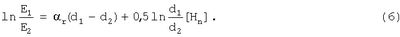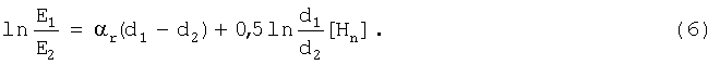 Натуральный логарифм отношения измеренных напряженностей поля медленной поверхностной волны пропорционален величине коэффициента затухания r, характеризующего диэлектрическую проницаемость жидкости:
