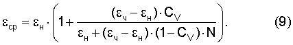 Средняя диэлектрическая проницаемость жидкости cp зависит от диэлектрических проницаемостей жидкости-носителя н и наполнителя (частиц) ч, концентрации частиц наполнителя в жидкости CV, а также коэффициента деполяризации N, характеризующего дисперсионный состав и определяется по формуле Лоренца-Лорентца /Приборы для неразрушающего контроля материалов и изделий. Справочник под ред. В.В.Клюева – 2-е издание, переработанное и дополненное – М.: Машиностроение, 1986 с.174./: