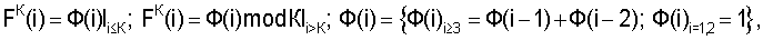 В качестве функции, определяющей число k пакетов сообщений с одинаковыми адресами отправителя и получателя используют последовательность чисел Фибоначчи.