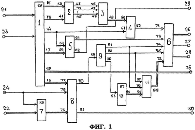 На фиг.1 также показаны первый 21 и второй 22 информационные входы системы, первый 23 и второй 24 синхронизирующие входы системы, а также информационный 25 и адресный 26 выходы системы, первый 27, второй 28 и третий 29 синхронизирующие и сигнальный 30 выходы системы.