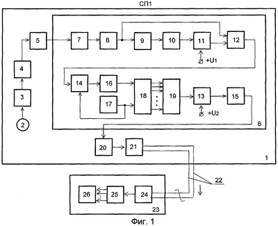 На фиг.3 приведена структурная схема третьего варианта сейсмического устройства обнаружения движущихся нарушителей, в состав которого входит группа сейсмоприемников 1 (от двух до n), соединенных двухпроводной линией связи 22 с пультом управления 23.