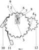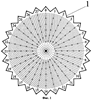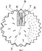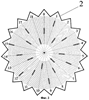 Лучи на диске 1 и на диске 2 могут выполняться в радиальном направлении, то есть по прямой от центров дисков к их окружности (фиг.1, 2), а также лучи могут выполняться по кривым, исходящим из центров дисков линиям.