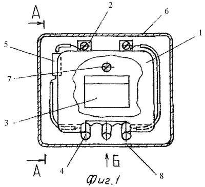 Сущность изобретения поясняется чертежами, где на фиг.1 изображен общий вид настенного выключателя, на фиг.2 – разрез по А-А на фиг.1, на фиг.3 – вид по стрелке Б на фиг.1.