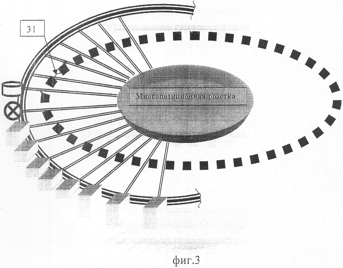 Использование множества электроприборов имеет место в офисах и различных предприятиях, где отдается приоритет выбору современной технологии. В ряде случаев множество проводников собирают в пучок, который изолируют в интерьере, а разводка проводников к каждому прибору при наличии переключателя технологического тока (31), расположенного непосредственно на вилке токоподводящего устройства вблизи электроприбора, позволяет быстрее управлять электроприбором без каких-либо затрат дополнительного времени на поиск нужного проводника.