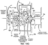 13. Система лазера по п.1, в которой каждая из вышеупомянутых первой и второй рабочих камер лазера определяют поток газа с постепенно увеличивающейся площадью поперечного сечения в направлении вниз по течению потока от вышеупомянутых электродов, что обеспечивает возможность восстановления большой процентной доли перепада статического давления, возникающего в областях разряда.