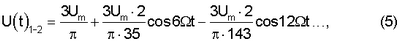Наличие в выпрямленном напряжении U(t)1-2 шестой и двенадцатой гармоник частоты 50 Гц, при работе генератора на частоте f0 вызывает образование «паразитных» токов на частотах f0±300 Гц и f0±300 Гц, которые являются помехами.