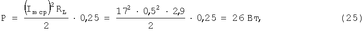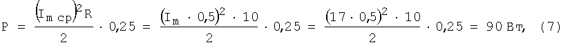 В выражении (7) числитель умножается на 0,25. Это связано с тем, что ключ находится в замкнутом состоянии 025Т0, когда протекает через него ток, создавая потери мощности. Когда ключ разомкнут, потерь мощности из сети нет.