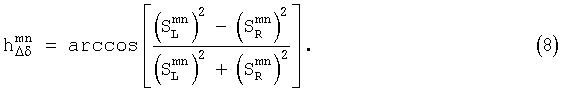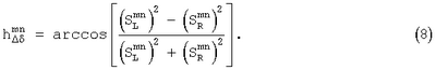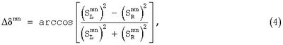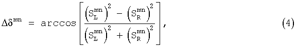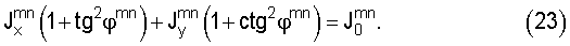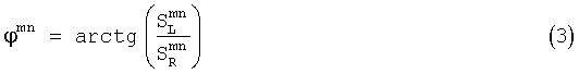 Поскольку величина угла mn изменяется в зависимости от величин сигналов и в соответствии с формулой (3), то подстановка последней в выражение (13) дает