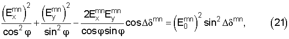 описывающее эллиптическую поляризацию светового потока [6], где Величина разностного фазового сдвига  mn между и определяет форму эллиптической поляризации.