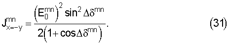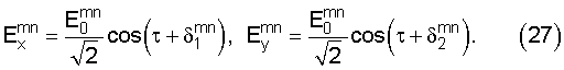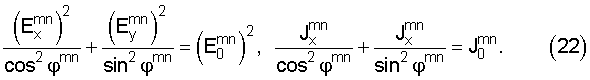 которое описывает эллиптическую поляризацию света [6]. Для реализации циркулярной поляризации величина  mn фазового сдвига выбрана равной значению /2 по абсолютной величине, подстановка которого в (21) дает выражение для амплитуды и интенсивности света