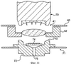 Следует также заметить, что подвижные зажимы 42 перемещаются под действием толкающего усилия в направлении А до момента, когда их опорная поверхность 48 оказывается под опорной плоскостью Р капсулы, соответствующей приемной поверхности 710 нижнего блока. После этого подвижные зажимы остаются в положении выжидания вплоть до конца вытяжки.