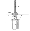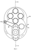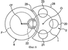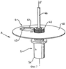 Для обеспечения устойчивости устройства, а также удержания капсул в трубах в положении хранения предусмотрено средство удержания труб 28, на которое опирается центральное соединительное средство 25. Средство удержания труб 28 выполнено в виде неподвижной опорной плиты, жестко соединенной с главным стояком 30 при помощи распорных средств (не показаны). Через опорную плиту 28 проходит с возможностью скольжения центральная ось 26 карусели, обеспечивающая вращение карусели, то есть всему комплексу, образованному загрузочными трубами 20-23 и их соединительными средствами 25, 26, вокруг центральной вертикальной оси О по отношению к опорной плите 28, которая остается неподвижной по отношению к стояку 30. Таким образом, загрузочные трубы 20-23 могут перемещаться по круговой траектории I вокруг оси О, как схематически показано на фиг.6. Благодаря этому трубы могут перемещаться между положением удержания капсул опорной плитой 28 и положением селекции, соответствующим проходу 29, выполненному в опорной плите 28, при этом указанный проход находится на пересечении с определенной дугой орбитальной траектории I. Таким образом, проход 29 является нижним отверстием в опорной плите 28 для загрузочной трубы с определенным набором, в данном случае на фиг.6 это труба 22.