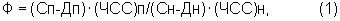 где Сп – измеренное значение систолического артериального давления испытуемого человека в покое; Дп – измеренное значение диастолического артериального давления испытуемого человека в покое; (ЧСС)п – измеренное значение частоты сердечных сокращений испытуемого человека в покое; Сн – значение нормы систолического артериального давления для здорового человека в покое; Дн – значение нормы диастолического артериального давления для здорового человека в покое; (ЧСС)н – значение нормы частоты сердечных сокращений для здорового человека в покое. 2. Способ определения степени перегрузки сердца, включающий измерение систолического и диастолического артериального давления и частоты сердечных сокращений в покое, затем при заданной предельной для человека физической нагрузке, после чего вновь измеряют систолическое и диастолическое артериальное давление и частоту сердечных сокращений, а степень перегрузки сердца (Ф) в разах определяют по формуле (3)